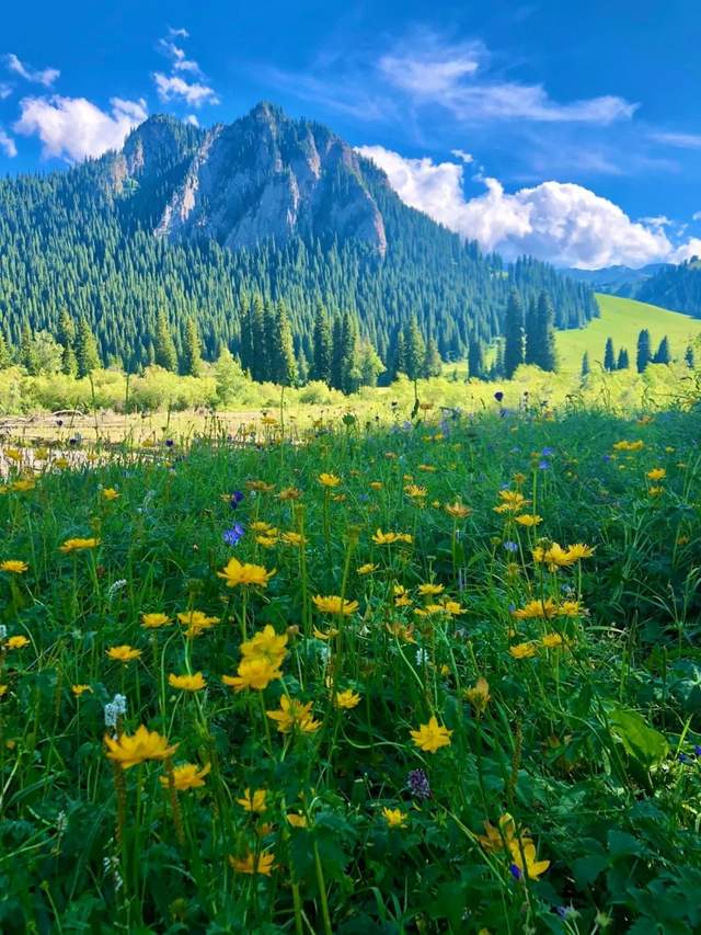滔滔的喀什河水奔騰不息,喀什河南岸芳草茵茵,如果運(yùn)氣好,你可以看見百花盛開的美景。每年夏季,這里百花齊放,奇花異草,數(shù)不勝數(shù)!仿佛仙女在這里編織了一個(gè)又一個(gè)花海毯子!