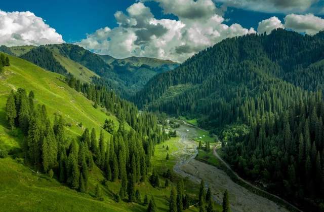 唐布拉草原位于喀什河上游南岸阿吾拉勒山北坡唐布拉溝內(nèi);唐布拉草原是伊犁地區(qū)著名的草原之一,風(fēng)景優(yōu)美,當(dāng)沿著喀什河谷溯源而上,行至唐布拉溝口時(shí),喀什河谷地形開闊,兩岸河流階地十分發(fā)育。河流階地豐茂的草原上百花盛開,然而只有進(jìn)入唐布拉溝內(nèi)才開始見茂密的云杉林。