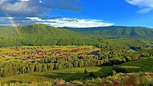 這里就是一個(gè)被遺落世間的童話世界,進(jìn)入禾木村,首先進(jìn)入眼簾的是一棟棟的小木屋、成群結(jié)隊(duì)的牧群、重巒疊嶂的群山和枝葉濃茂的森林,蒼翠欲滴的草地與碧空如洗的藍(lán)天相互呼應(yīng)。木屋,小橋流水,炊煙裊裊、樺林還有石橋,匯集成一幅幅優(yōu)美的風(fēng)景畫。