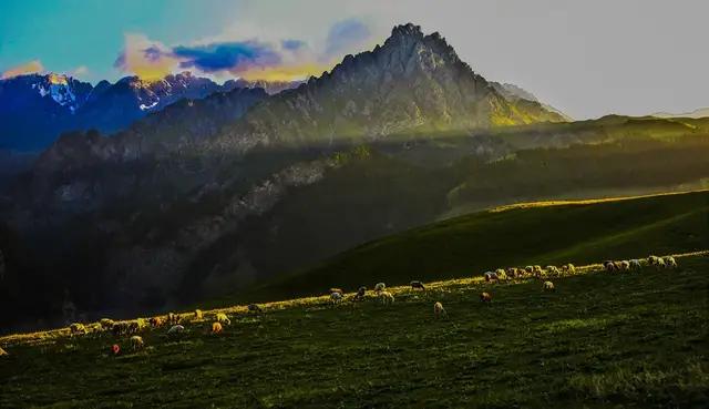 巍峨的雪山與天然的草場相互映襯