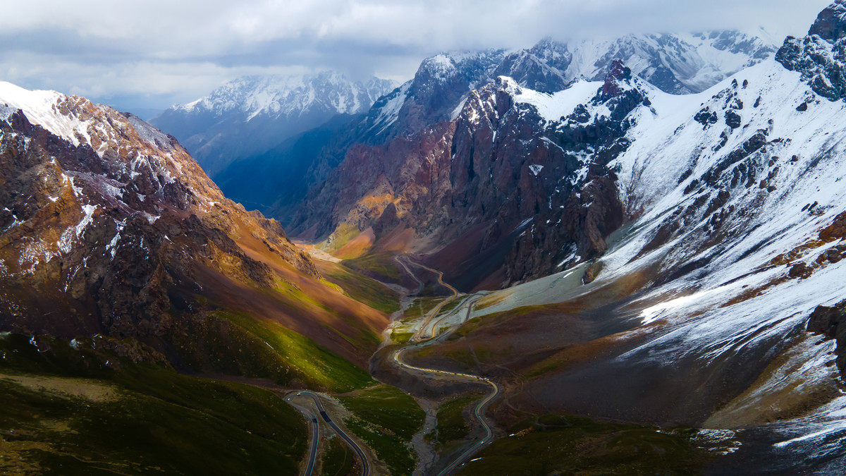 獨庫公路穿越崇山峻嶺、高原峽谷,漫過連綿起伏的草原,一路與大自然的生靈為伴,風景迷人。因為獨庫公路的氣候問題,有時山下是雨,山上則是大雪,因此有限行措施。