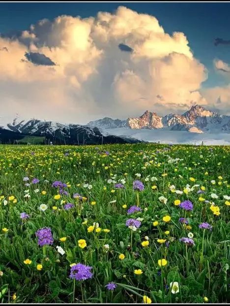 白雪皚皚的山峰、茂密的森林、連綿起伏的山丘、平坦的草甸,蜿蜒的溪流,那拉提草高花旺,碧茵似錦,非常美麗,是世界最美河谷草原之一,歷史上的那拉提草原有鹿苑之稱。