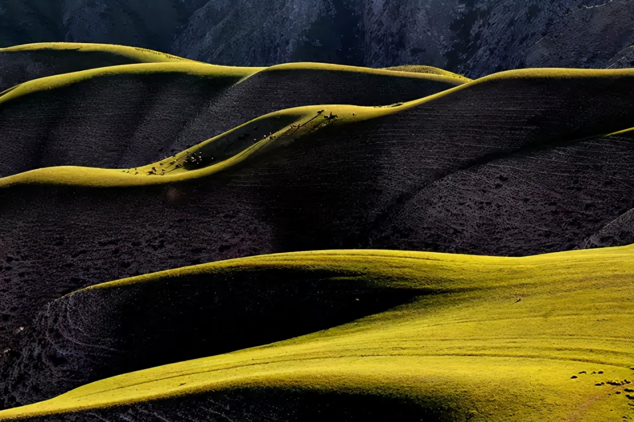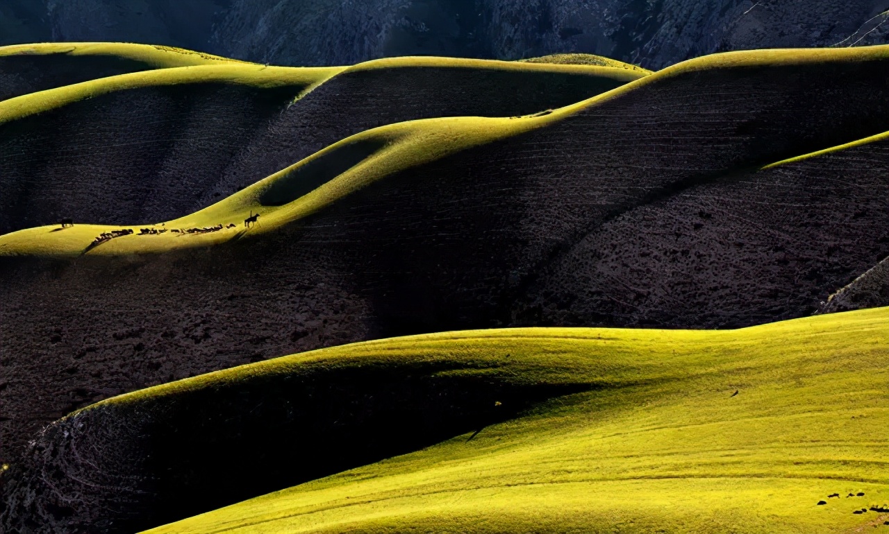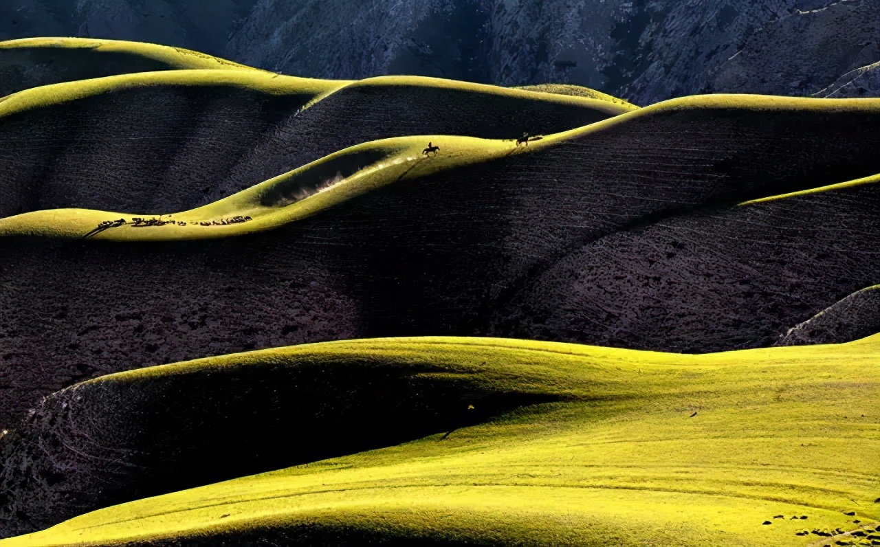 你以為這樣的喀拉峻已經(jīng)足夠美,不不,這些其他草原也有,不足為奇,下面才是獨(dú)一無二的驚艷!群山起伏成極富韻律的曲線,如大海掀起的層層波浪,為茫茫草原平添一份奇特動(dòng)感的美,只一眼就震撼到失了言語。