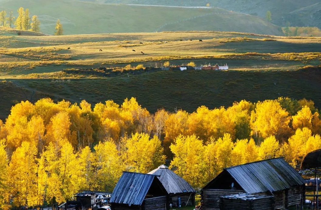 喀納斯河邊村莊林立 秋黃遍野