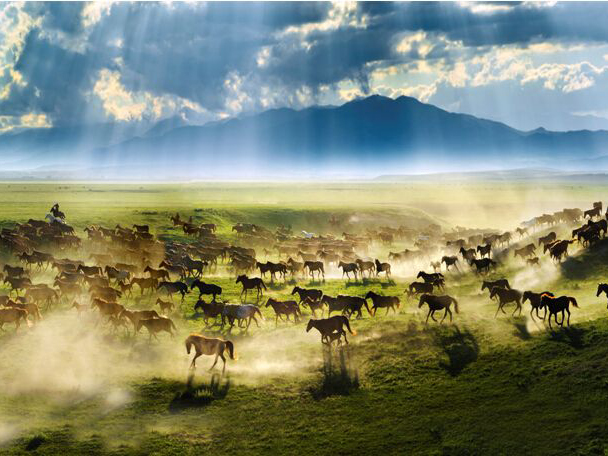 比如阿勒泰地區(qū)的春、夏、秋、冬的牧場(chǎng),可看到新疆游牧民族的游牧生活,如遇到他們轉(zhuǎn)場(chǎng)時(shí),騎馬的牧民趕著成千上萬(wàn)只羊從一個(gè)牧場(chǎng)趕往幾百公里外的另一個(gè)牧場(chǎng),場(chǎng)面非常壯觀。
